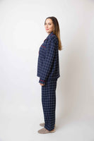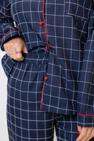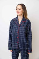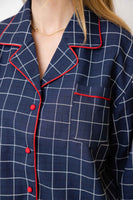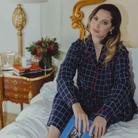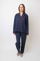 This elegant unisex windowpane cotton pajama set is as classic as it gets, and 100% Nonno approved. The navy with red piping is inspired by the outfits I wore in Italy as a child, and the fabric is heavy enough to wear lounging all day (or even dressed up to go out!) This set totally unisex and looks dashing on whoever wears it. You may dream of pasta.