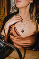 Our 14k Gold plated RIVINGTON Rope Chain was inspired by Eva’s heirloom rope chain necklace passed down from her Nonno (Grandfather). Our chain is adjustable in size so it can be integrated perfectly into an existing neck stack, OR be layered with other Rivington Rope Chains for a modern and trendy look.